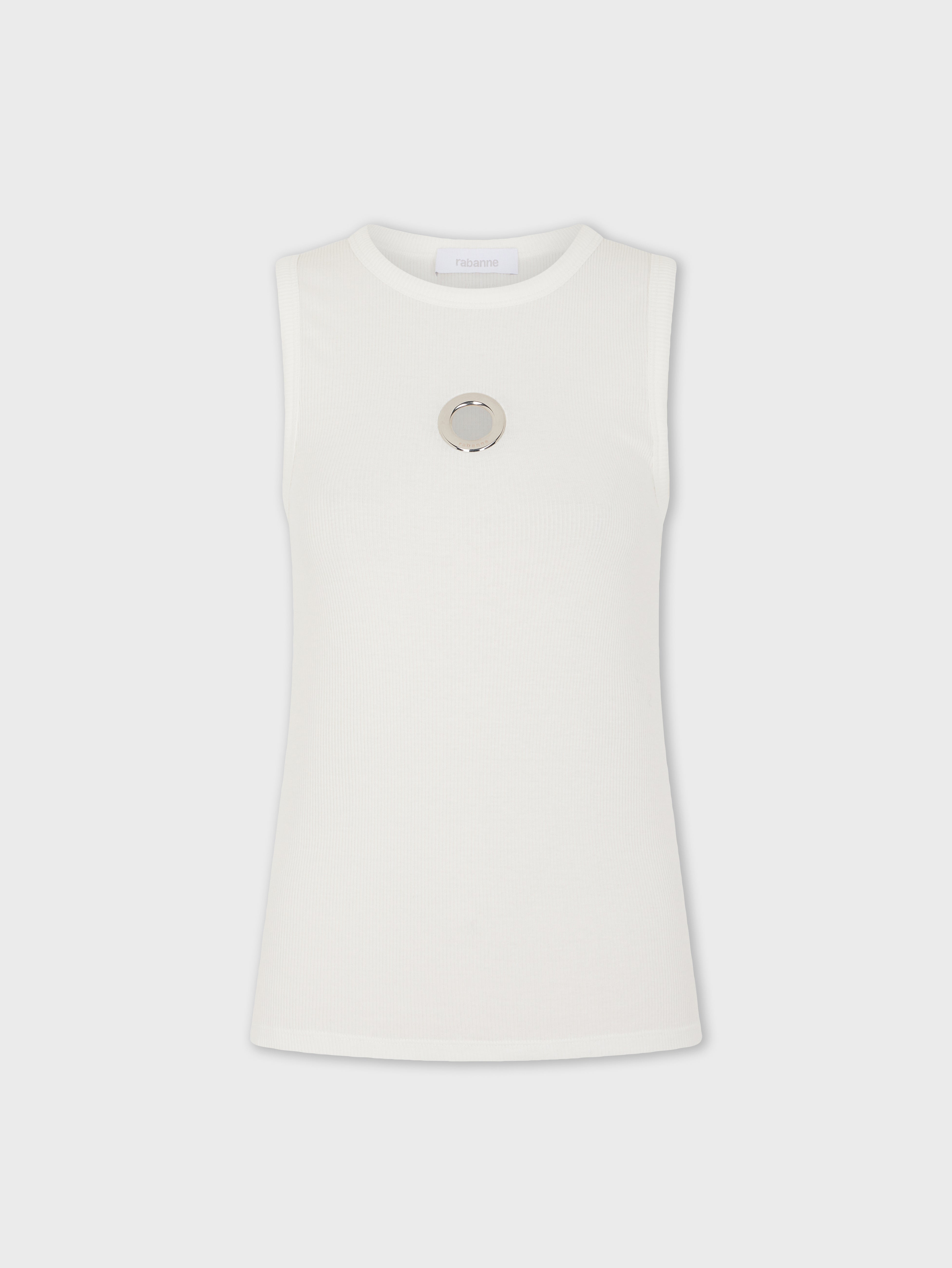 Tank top in cotton jersey with silver metal eyelet detail. - Color: White - Crew neck - Sleeveless - Composition: 97% cotton, 3% elastane - Made in Portugal Size & Fit - Model's height: 180 cm / 5ft 11in - Model wears a size FR 36 / UK 8 / US 4 - This style is true-to-size - We recommend your usual size.