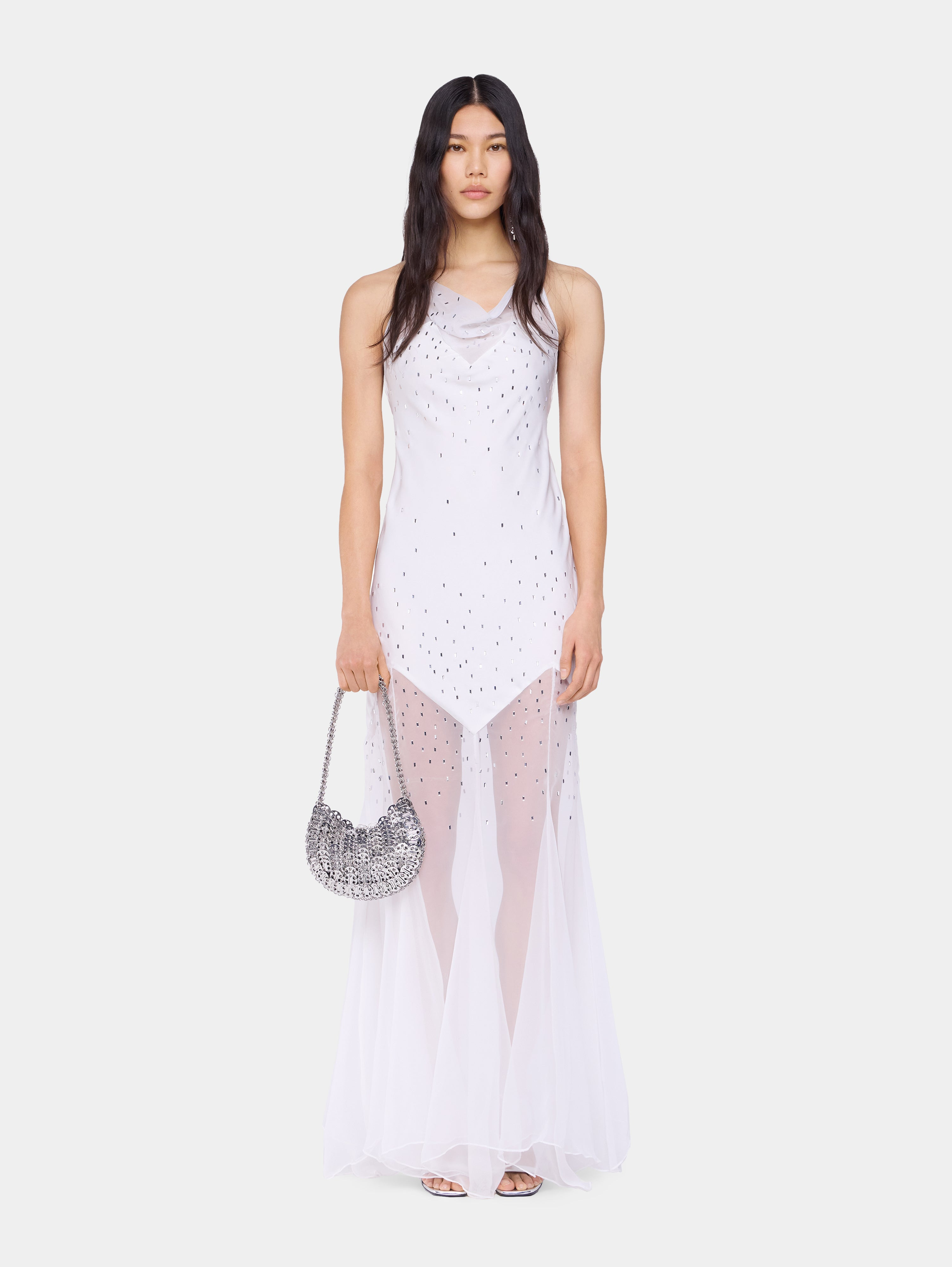 - Color : White - Cowl Neck - Sleeveless - Floor-length - Hotfix embroidery details at the front of the dress DETAILS - Composition : 100% Polyester - Made in Tunisia - Model's height: 180 cm / 5ft 11in - Model wears a size FR 36 / UK 8 / US 4 - This style is true-to-size - We recommend your usual size.