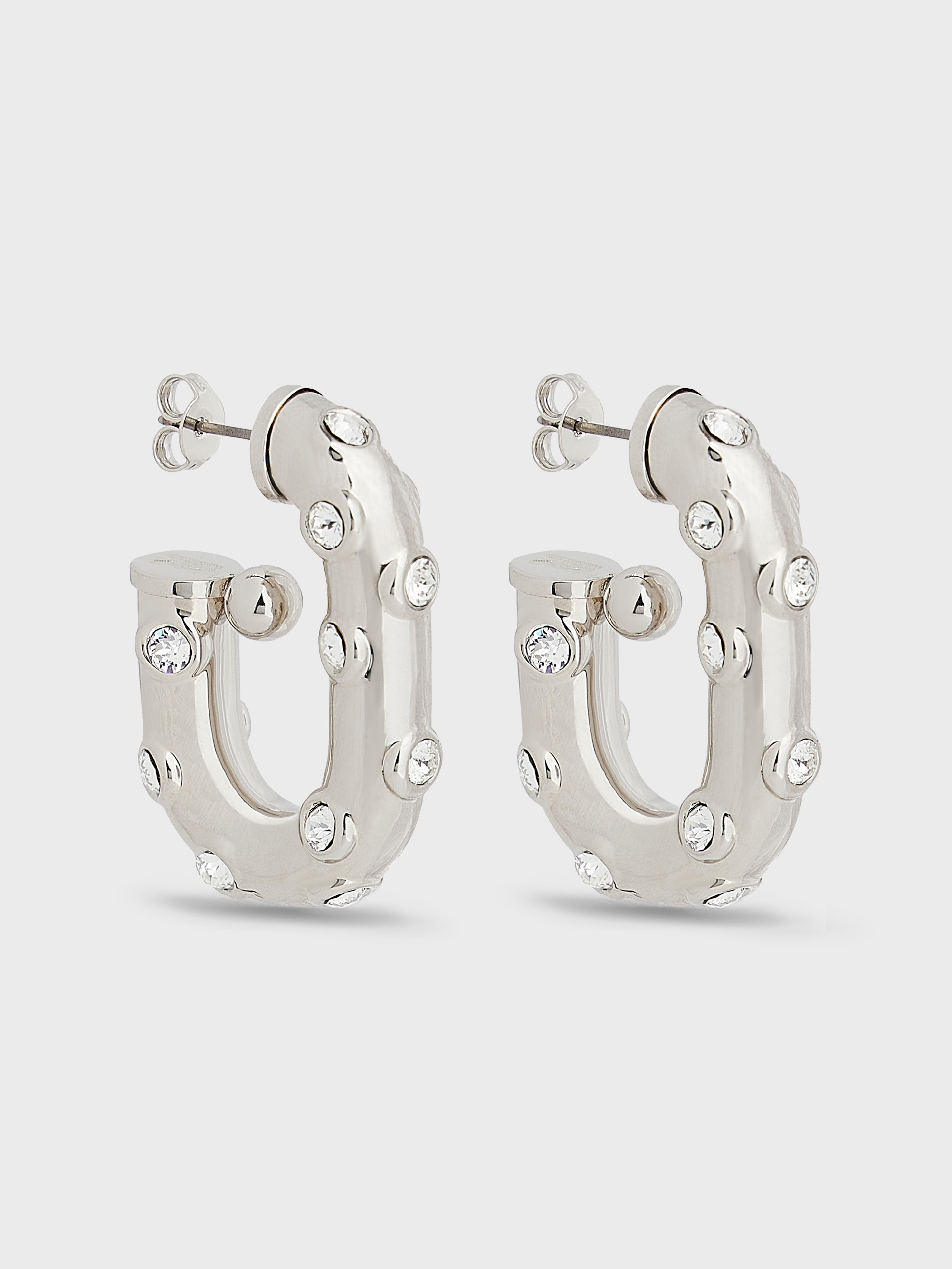 Pair of XL earrings composed of a link adorned with rhinestones. - Color: Silver / Rhinestones - Composition: 100% Brass - Made in Italy