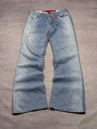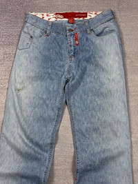 Vintage LGB Style Ecko Unltd Red Flared Distressed Jeans. Condition shows a few small stains. Fits like W30 — please check the measurements. Worldwide shipping 1–4 weeks No return/refund More info in dm Shipping from Moldova/Ukraine, not the USA. All customs duties and import taxes are covered by me. Waist 14.96 in 38 cm Inseam 31.3 in 79.5 cm Leg Opening 9.84 in 25 cm Front Rise 9.45 in 24 cm Thigh 10.63 in 27 cm