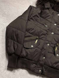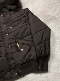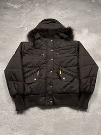 Y2K vintage jacket with fur trim on the hood. No visible flaws. Tagged size XL but fits closer to an M — please check the measurements for the most accurate fit. Worldwide shipping 1–4 weeks No return/refund More info in dm