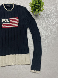 Polo Ralph Lauren - 🇺🇸Vintage 90s Ralph Lauren USA Flag Cable Knit Sweater