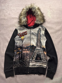 Vintage Y2K LGB IfSixWasNine Style Paris Faux Fur Zip Hoodie