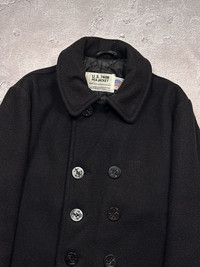 Vintage 90s Schott 740N USA Pea Coat Button Up Jacket Navy