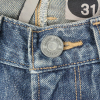 June 9 1999 Steel buttons Size 31 Measurements: Waist: 86cm Thigh: 30cm Front rise: 27cm Back rise: 39cm Length: 109cm Leg Opening: 22cm Condition: Like new