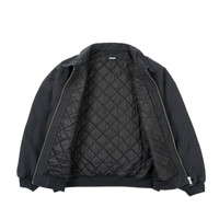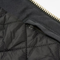 - I’M IN TRADER VIC'S - MASH UP ON RUM KEGS - AND VINZ FROM LA HAINE - IS GETTING WAVED 2 TABLES ALONG TECHNICAL DETAILS - Heavy cotton canvas - Diamond quilted lining - Ribbed cuff and hem - Embossed back Tri-ferg branding - YKK® silver zip - Concealed snaps in front pockets - Shell: 100% Cotton, Filling: 100% Polyester, Lining: 100% Nylon, Rib: 86% Cotton, 13% Polyester, 1% Polyurethane