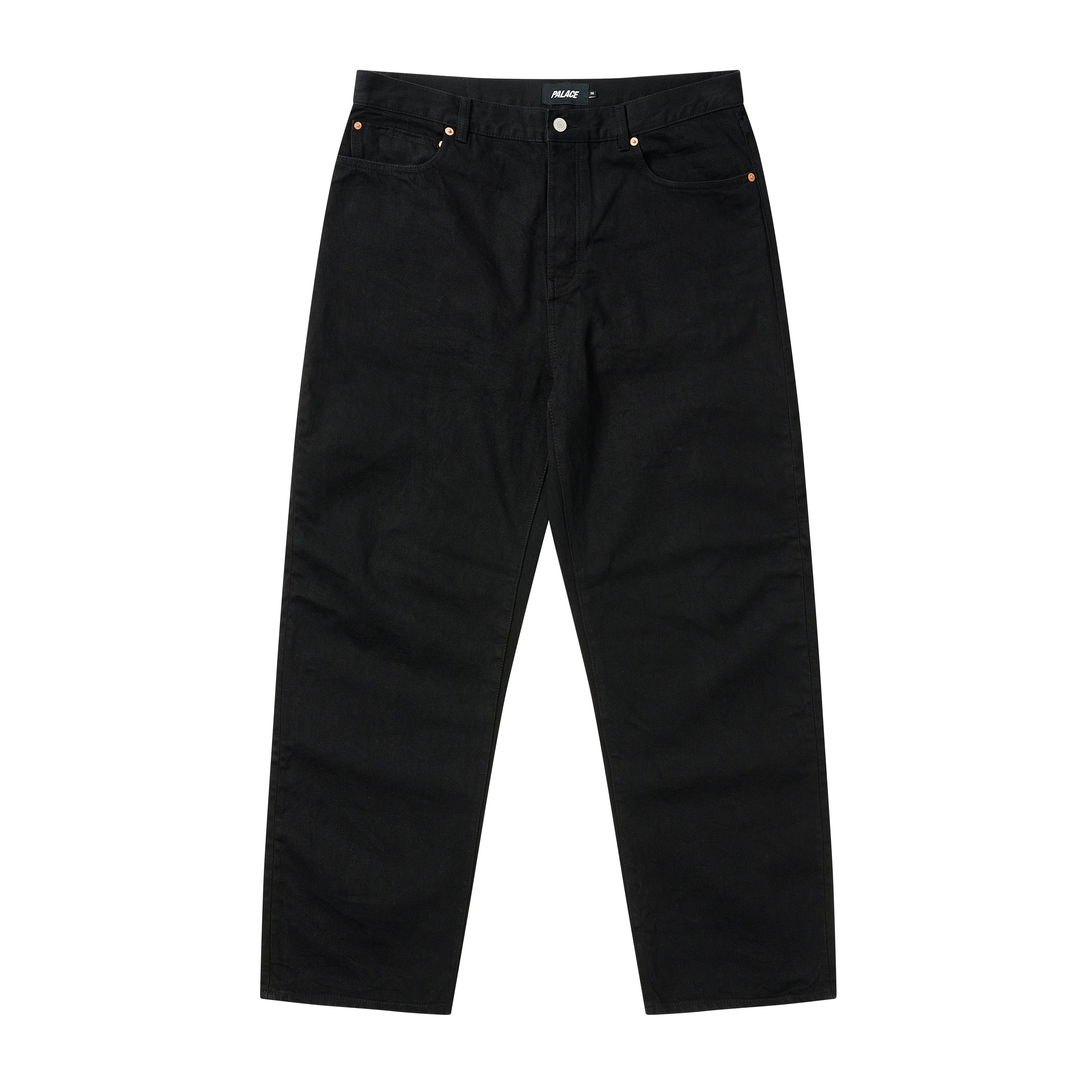 - quite hard to describe - maybe because i'm really high eating skips - watching antiques roadshow TECHNICAL DETAILS - P45 fit denim - Palace branded metal hardware - P45 leather back patch - 100% cotton