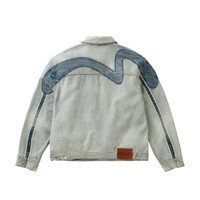 - still rate - anyone that can - reverse park - with nein beeper TECHNICAL DETAILS - REVERSE INDIGO TYPE 2 DENIM JACKET - TWO FRONT POCKETS - PALACE AND EVISU CO-BRANDED EMBROIDERY ARTWORK ON POCKETS - BUTTON CLOSURE - REVERSE DENIM DAICOCK ACROSS SHOULDERS - 100% COTTON
