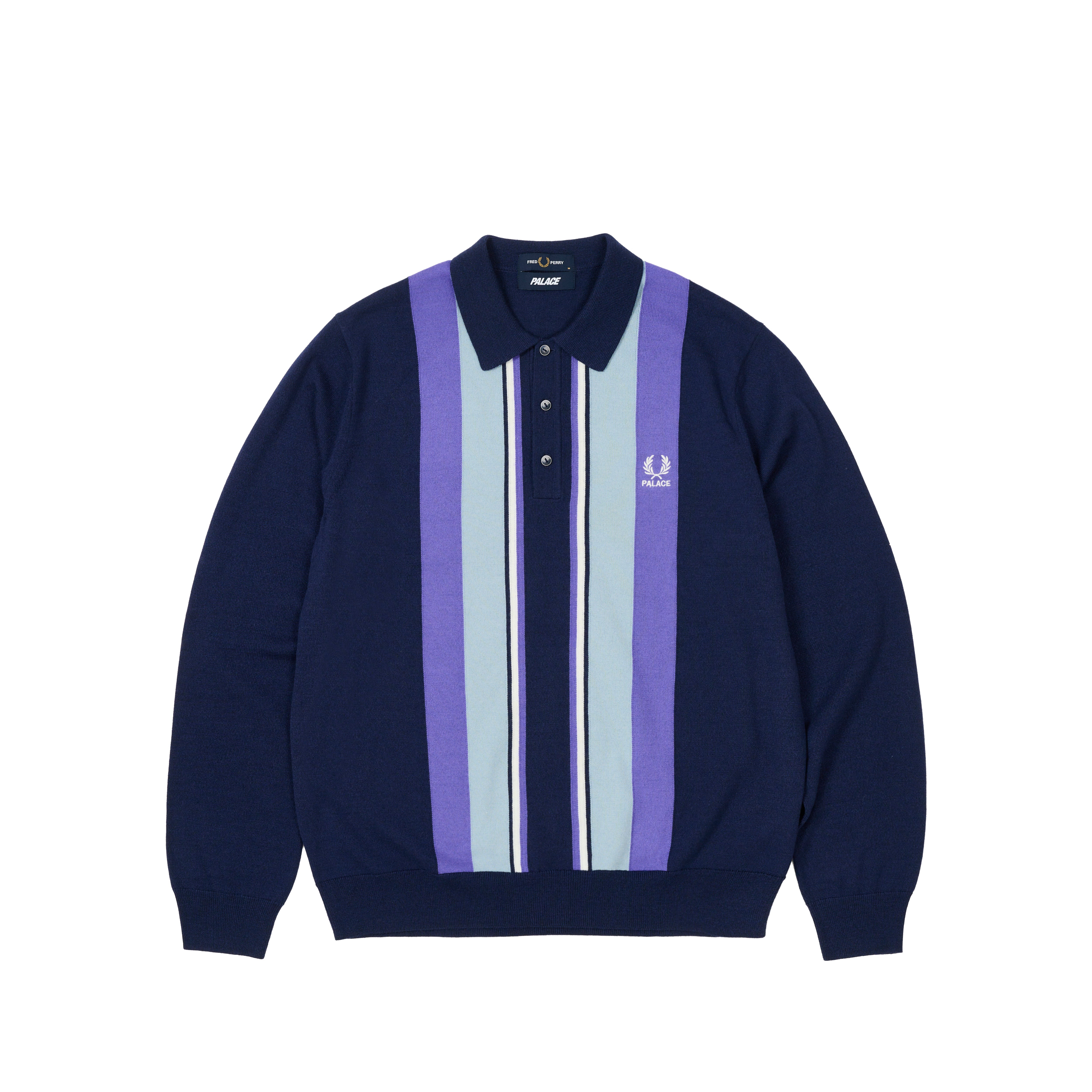 PALACE FRED PERRY LONG SLEEVE KNITTED SHIRT PEACOAT