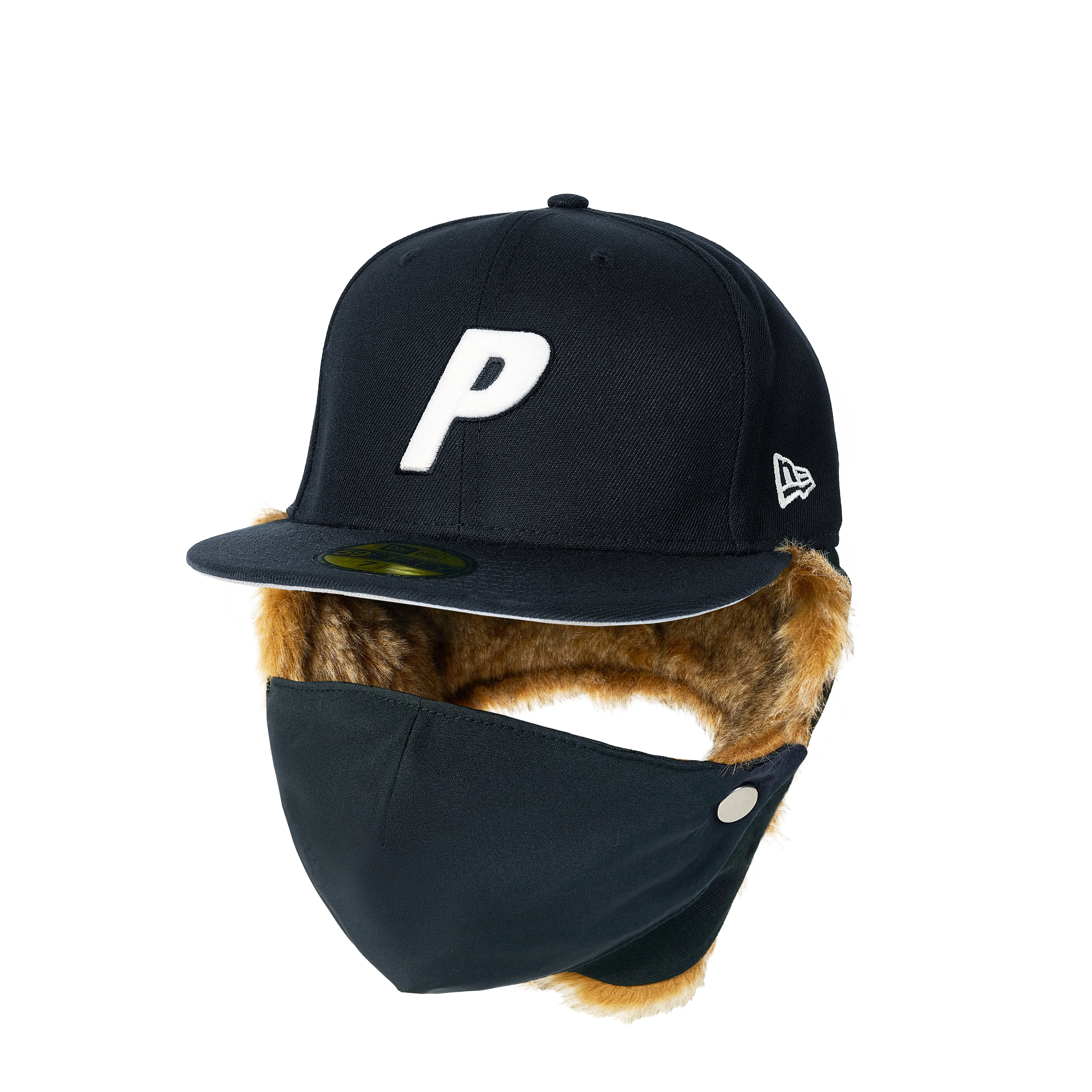 - big up - dogs’ ears TECHNICAL DETAILS - poly twill new era™ 59fifty™ dog ear fitted - pu faux fur lined ear flaps with metal snap button detachable face mask - metal zipper side pocket - embroidered palace & new era™ logos