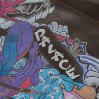 - hard - bits TECHNICAL DETAILS - Printed Back Susanoo Graphic - Front Two Way Pockets - Ykk® Metal Zip - Metal Chain Hang Loop - 100% Cow Leather