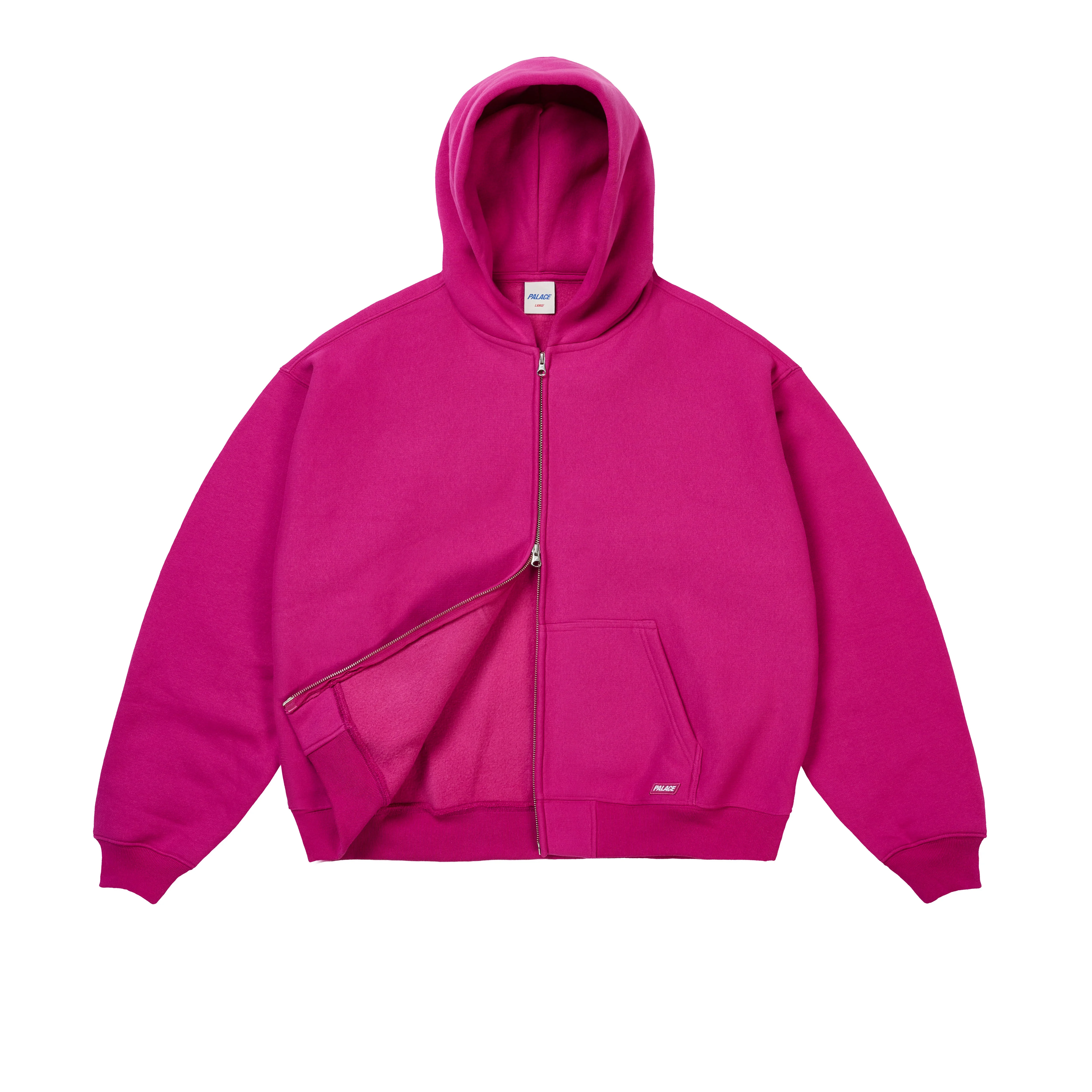 - roses are red - this hoodie is pink - might just jam - in bed today i think TECHNICAL DETAILS - Oversized fit - 490gsm poly cotton fleece - Palace woven label at kangaroo pocket - Ribbed cuffs and hem - Two-way YKK® P branded zip down centre front - 66% Dry Cotton, 34% Polyester