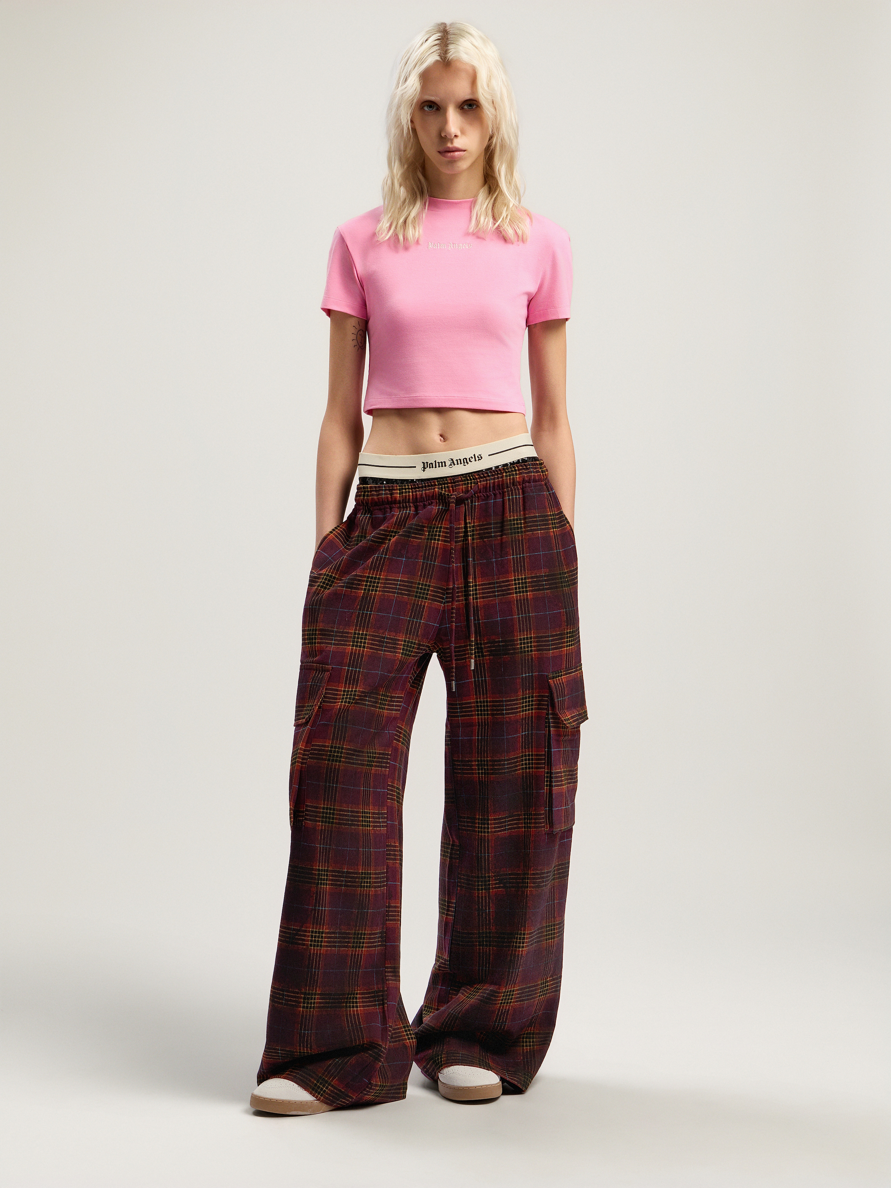 Soft cotton blend baby tee featuring the classic logo, showcasing a sleek cropped design and a snug fit. - High neck design - Short sleeves - Minimalist front logo detail - Snug fit - Clean back panel - Cropped hem DETAILS - 100% Polyester, Fabric: 47% Cotton 47% Polyester 6% Elastan - Code: PWAA077F25JER0013003