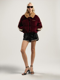 This Classic Logo Cord Down Jacket features a plush corduroy exterior with a cozy shearling collar, blending streetwise style with warmth. The debossed logo at the rear adds a signature touch. - Soft corduroy exterior with insulating down fill - Plush shearling collar for added warmth - Front button fastening for easy wear - Debossed logo at rear for signature style - Long sleeves with a relaxed fit - Structured silhouette with side stripe detailing DETAILS - 100% Polyester, Embroidery: 100% Polyester, Embroidery: 100% Polyester, Fabric: 98% Cotton 2% Elastan, Fabric: 100% Polyester, Lining: 100% Polyester, 100% Polyester, 50% Down 50% Kapok - Code: PWED029F25FAB0012860