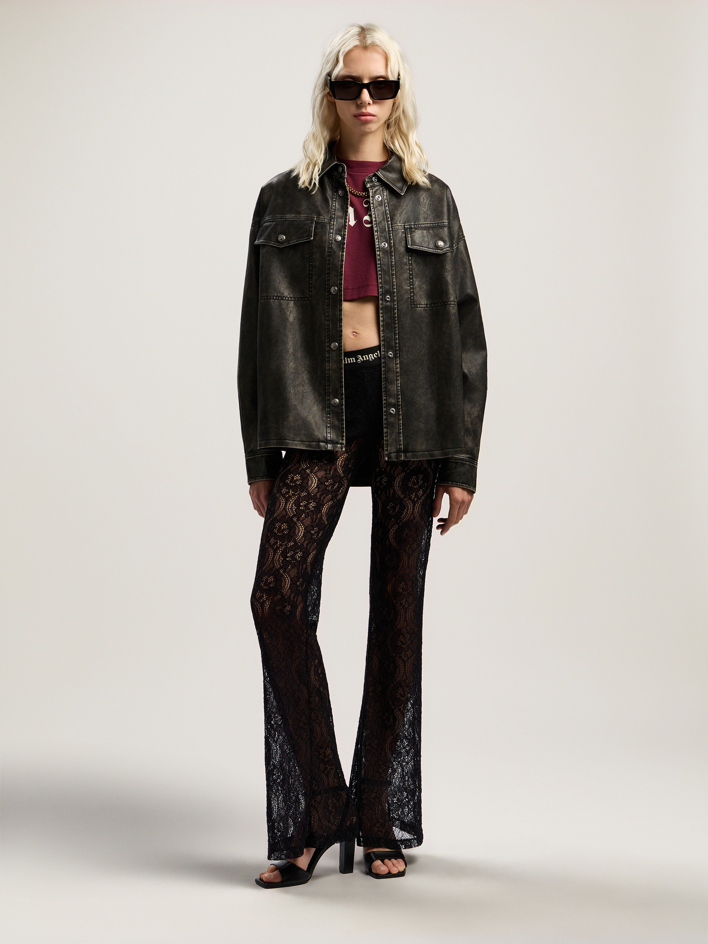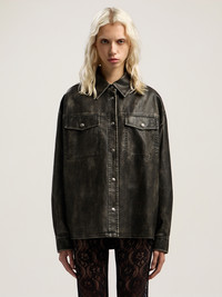 Coated overshirt featuring a curved logo design and structured silhouette, offering a refined edge to streetwear fashion. - Coated fabric construction - Curved logo detail at rear - Structured collar and long sleeves - Front button fastening - Double chest pockets with flap - Buttoned cuffs for adjustable fit - Rear yoke for added structure - Textured finish for a rugged look DETAILS - 68% Polyurethane 27% Viscose 5% Altre fibre, Lining: 100% Viscose - Code: PWJE009F25FAB0010710