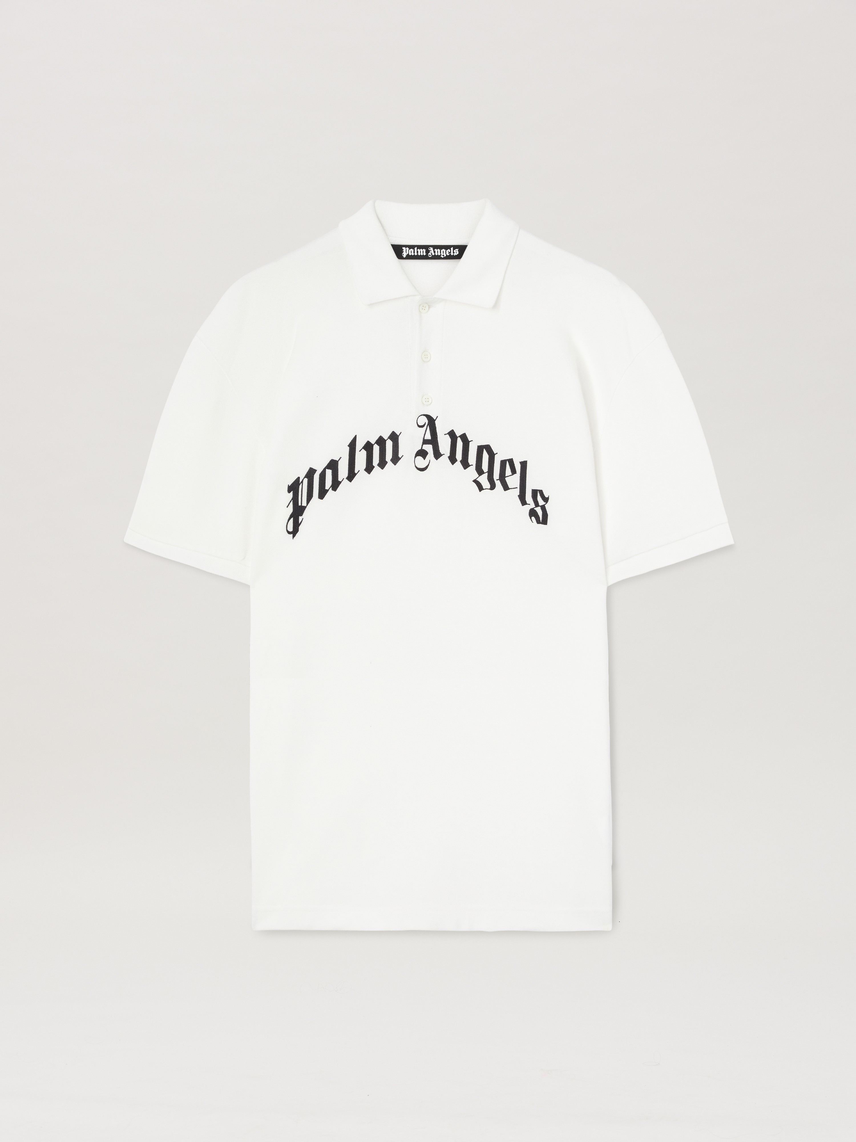 Logo mutations that turn a timeless icon into new seasonal graphic. Men's white polo shirt with Curved logo embroidered in black on center front. DETAILS - Salah Wears Size M Height: 6' 0” (183 Cm) Bust: 37.5” (95 Cm) Waist: 30” (76 Cm) Hips: 36” (91 Cm) Embroidery 100% PolyesterFabric 100% CottonRib Detail 100% Cotton - Code: PMGB012S25FAB0030310