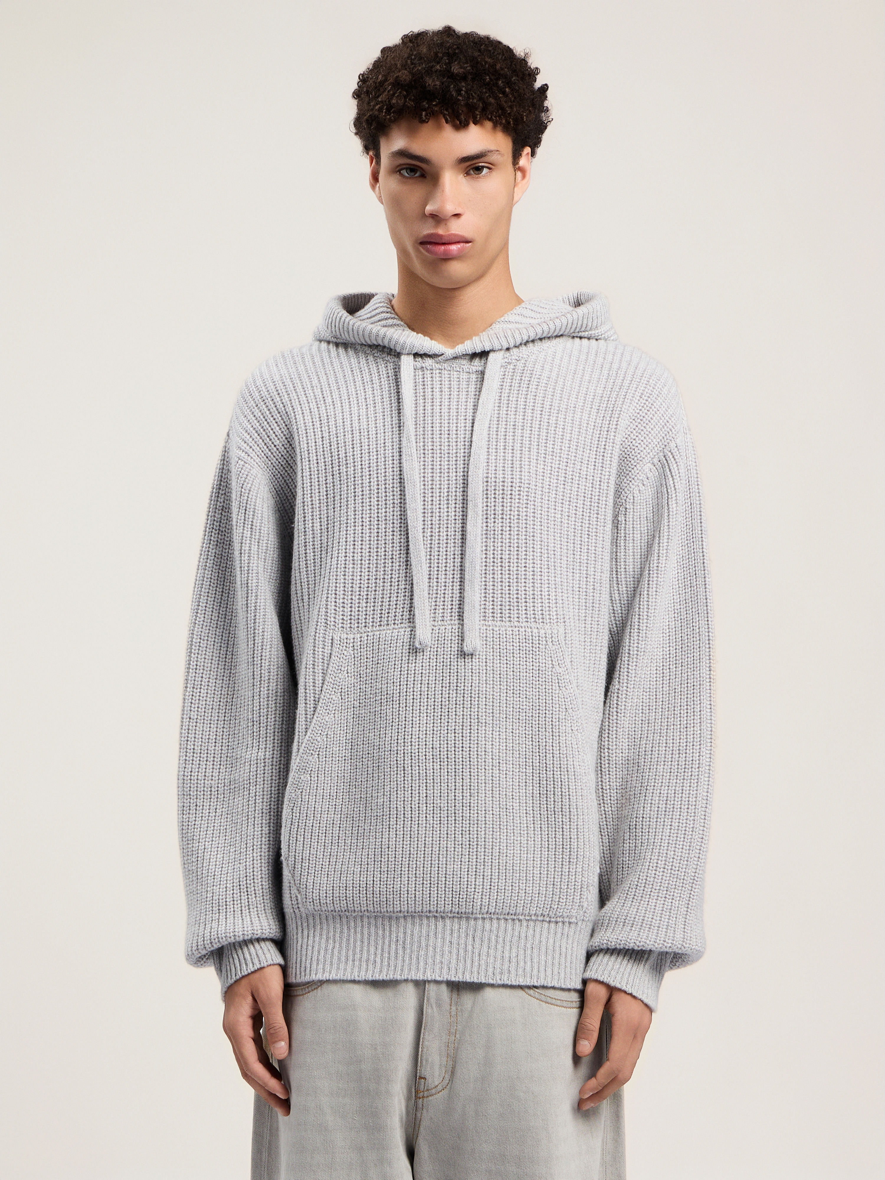 Explore streetwise coolness with the Curved Logo Rib Knit Hoodie, featuring a textured knit and signature logo detail. - Ribbed knit construction - Attached hood with drawstrings - Long sleeves - Front kangaroo pocket - Straight hem - Signature logo detail at chest DETAILS - 50% Acrylic 50% Wool, Fabric: 40% Wool 30% Viscose 20% Polyamide 10% Cashemere - Code: PMHU025F25KNI0010803