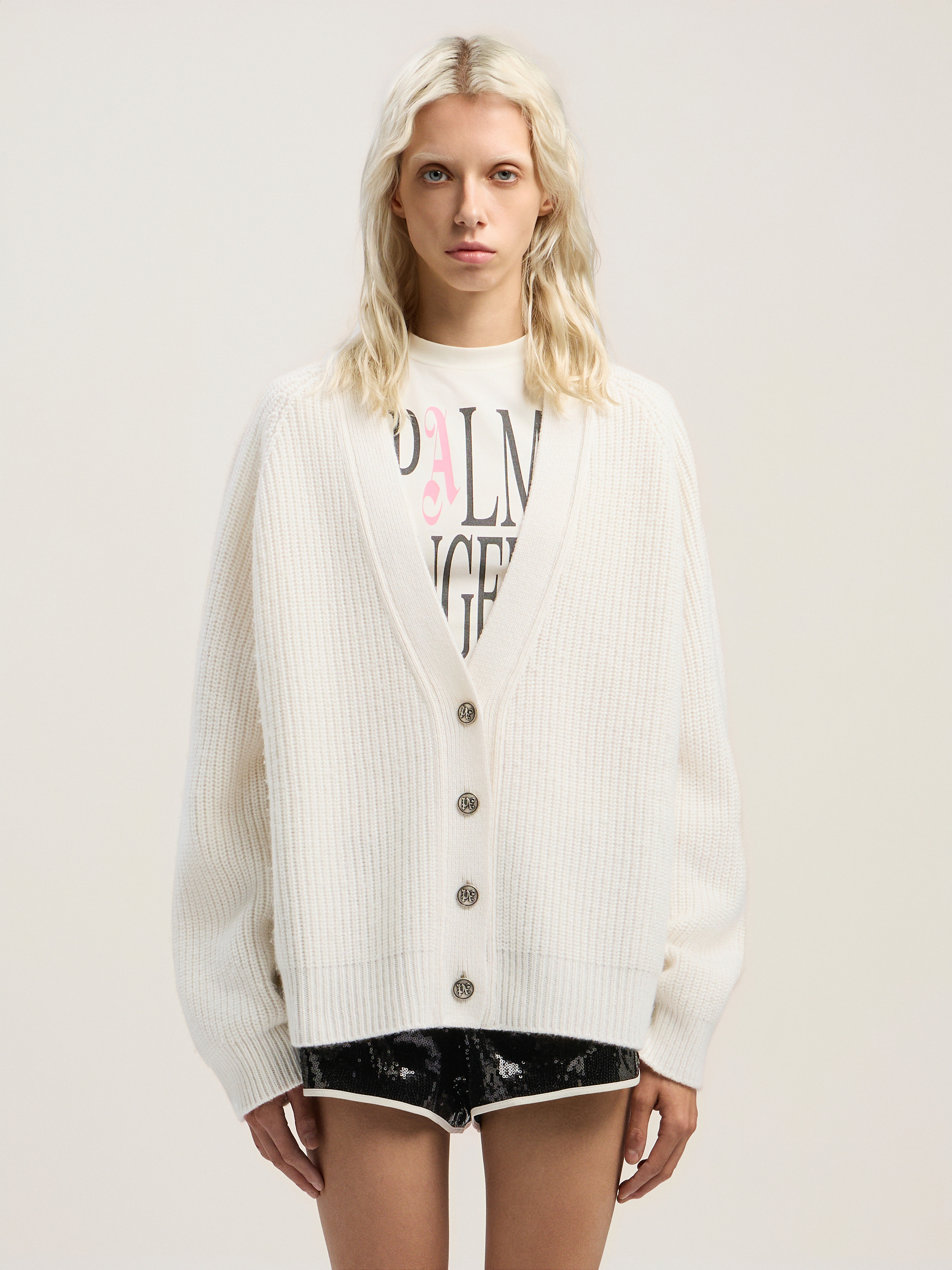 <p>Ribbed knit cardigan featuring a curved logo detail, offering a seamless blend of streetwise flair and refined edge.</p><ul type="circle"><li>Crafted from ribbed knit fabric</li><li>Curved logo detail at the back</li><li>V-neckline for a classic touch</li><li>Button-down front fastening</li><li>Long sleeves for added warmth</li><li>Soft texture with a relaxed fit</li></ul> DETAILS - 50% Acrylic 50% Wool, Fabric: 40% Wool extrafine merino 30% Viscose 20% Polyamide 10% Cashemere - Code: PWHB045F25KNI0010330