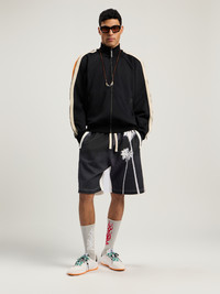 Embrace streetwise coolness with these sweatshorts, crafted for comfort and style, featuring a unique palm tree print. - Elastic waistband with drawstring fastening - Side slip pockets for convenience - Signature palm tree print on the leg - Relaxed fit for everyday wear - Soft, breathable fabric construction - Stitch detailing at the hem DETAILS - 100% Cotton, Lining: 100% Cotton - Code: PMCI019F25FLE0020310