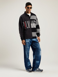 Long-sleeve polo shirt featuring a patchwork design with bold logo detailing. - Contrasting panel design - Bold logo print across the front - Flame motifs on sleeves - Classic polo collar - Relaxed fit - Long sleeves - Buttoned front placket DETAILS - 100% Cotton, Fabric: 100% Cotton, Fabric: 100% Cotton, Rib detail: 100% Cotton - Code: PMGC01BF25FAB0011008