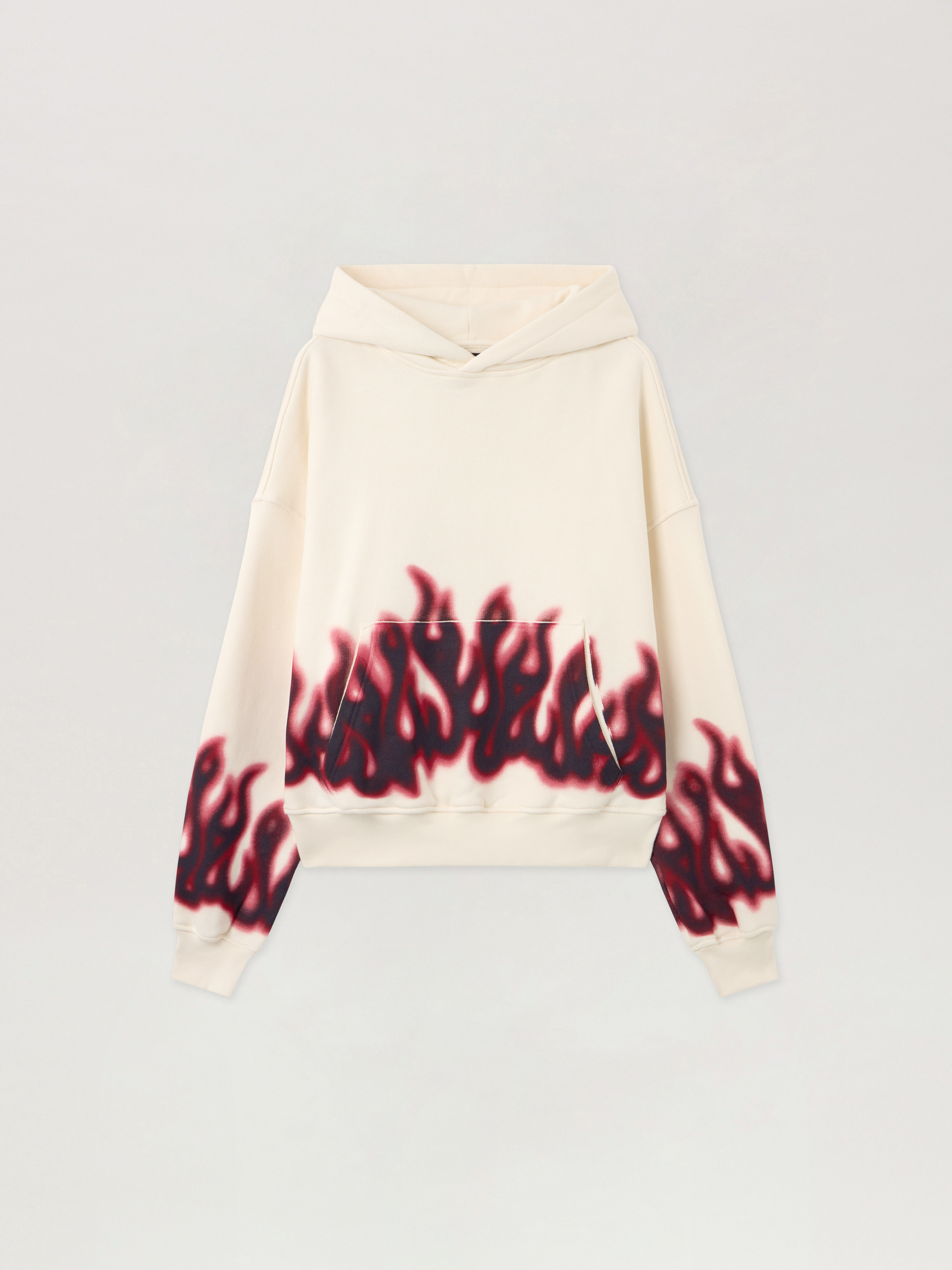Embrace fiery street style with this loose-fitting hoodie featuring bold flame graphics and a statement back logo. - Loose fit for a relaxed silhouette - Bold flame print at hem and sleeves - Oversized logo across back - Soft hood with subtle drape - Ribbed cuffs and hem for added structure - Front kangaroo pocket for functionality DETAILS - 100% Cotton, Rib detail: 96% Cotton 4% Elastan - Code: PMBB17EF25FLE0020384