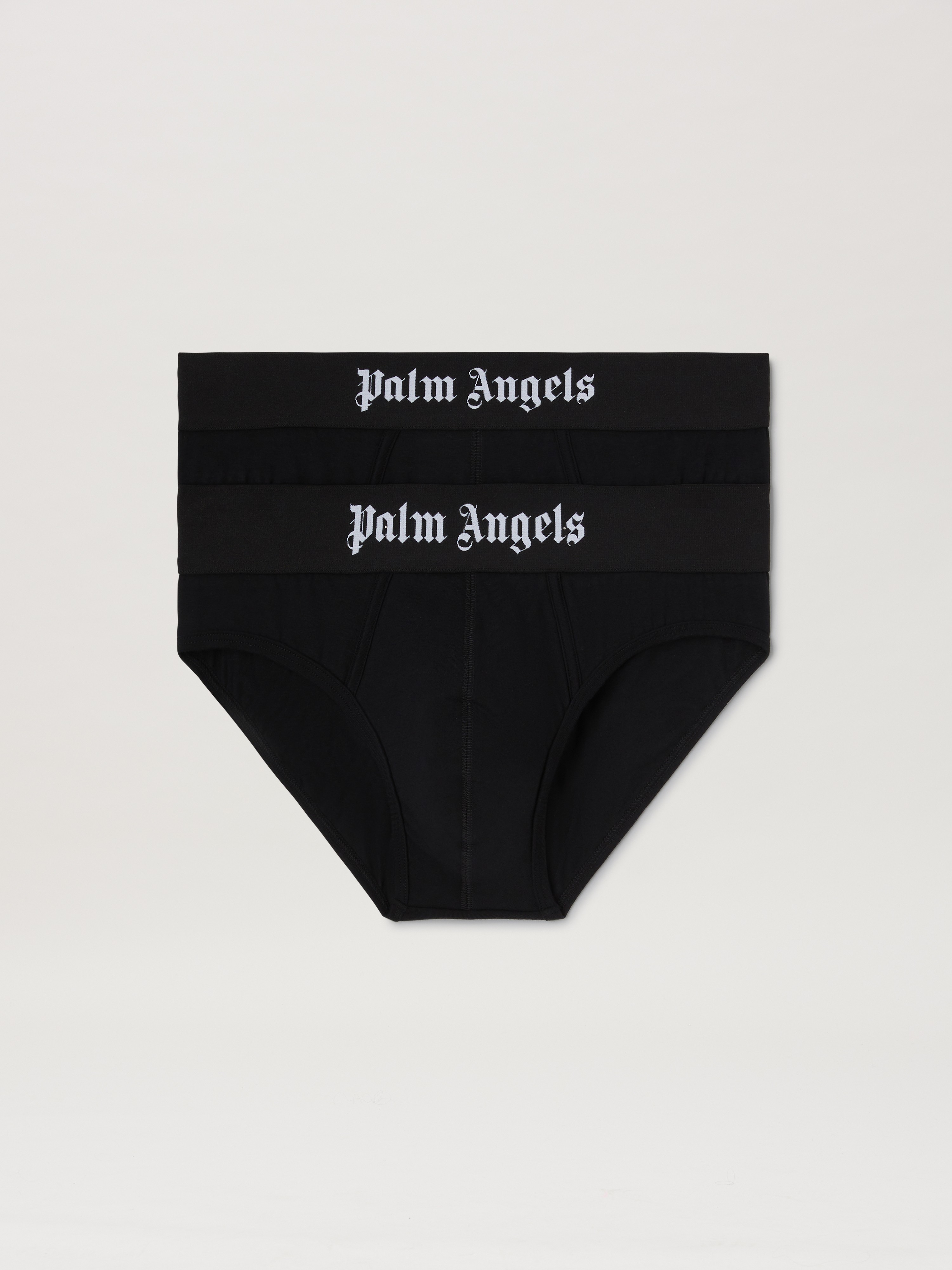 An exposed logo band to match your favourite styles. Pack of two men's black slips with black elastic band with Palm Angels logo in white. DETAILS - Detail 82% Polyester 9% Elastan 9% PolyamideFabric 5% Elastan 95% Cotton - Code: PMUF002S25FAB0011010