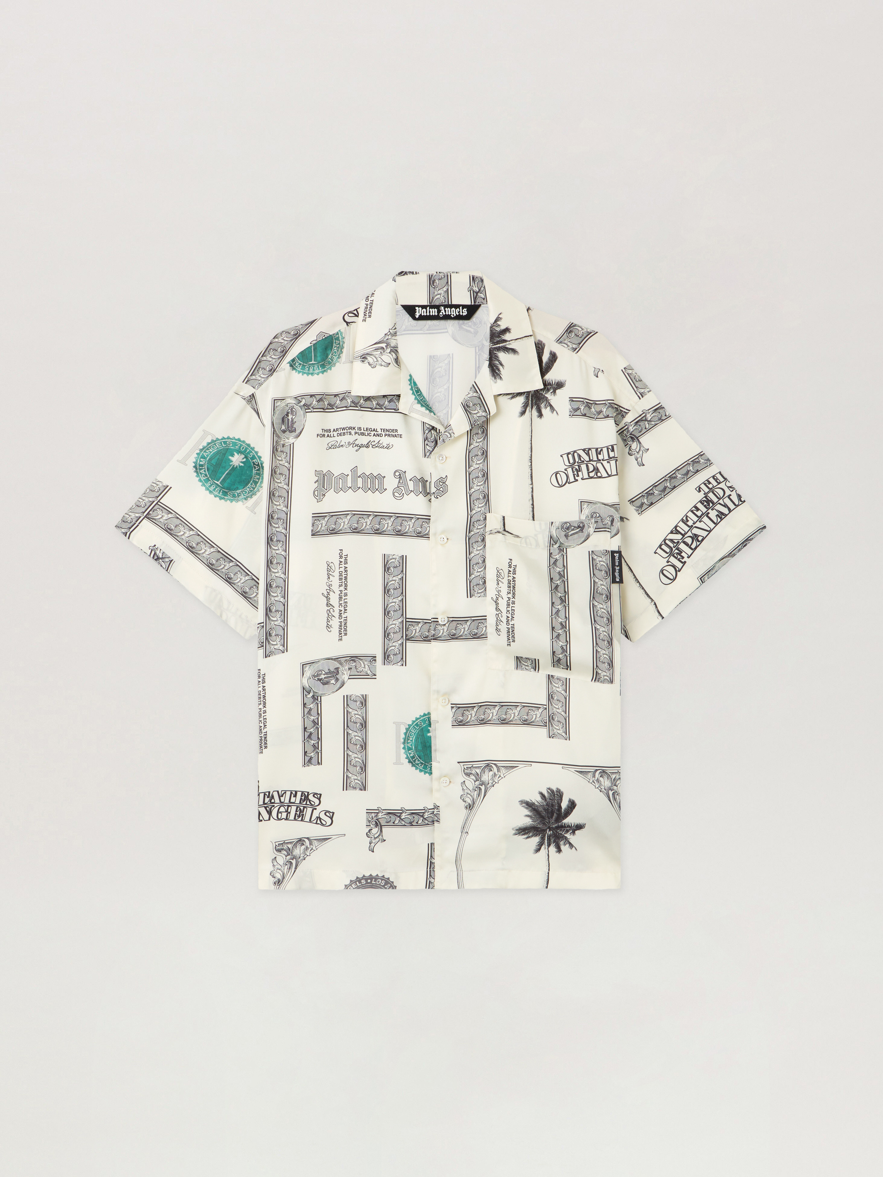 Short-sleeved shirt crafted from premium fabric featuring a unique dollar print. - Classic collar - Front button fastening - Short sleeves - All-over dollar motif - Chest patch pocket - Straight hem DETAILS - 100% Polyester - Code: PMGG00DF25FAB0030B10