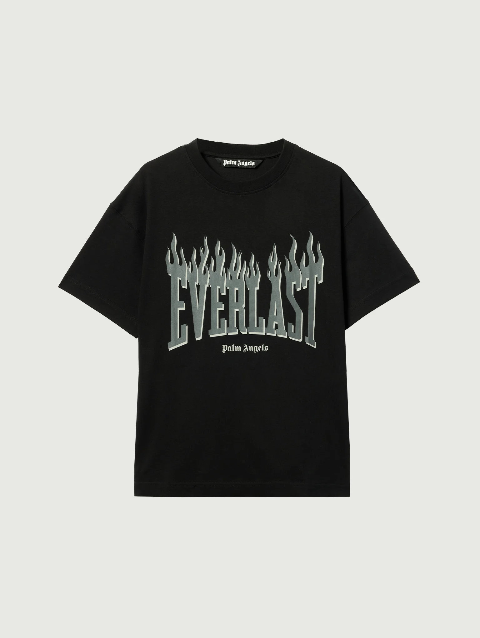 Loose-fit T-shirt with bold flame-effect logo print - Short sleeves - Crew neckline - Front “Everlast” and “Palm Angels” print DETAILS - 100% Cotton - Code: PMAA10DT26JER0011009