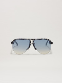 A one-piece frame with stud-like metal screws. Iconic, teardrop-shaped model with black havana acetate frame and nose, decor screws and gradient electric blue lenses. DETAILS - Material 1 30% Polyamide 70% Acetate - Code: PERI10BS25PLA0011249