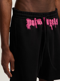 Relaxed fit sweatshorts featuring a bold sprayed logo at the waist, crafted from premium cotton for ultimate comfort. - Elastic waistband with drawstring - Side slip pockets - Raw hem detailing - Iconic logo print at waist DETAILS - 100% Cotton, Fabric: 100% Cotton - Code: PMCI019F25FLE0031032