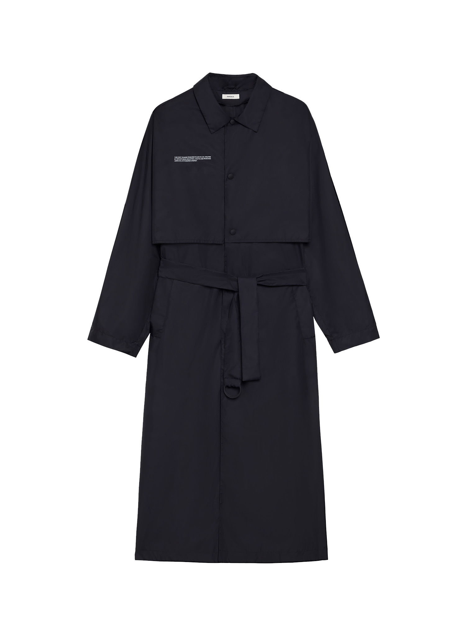 MAKE A STATEMENT IN DURABLENESS WITH THE PANGAIA RECYCLED NYLON TRENCH COAT IN BLACK. THIS TIMELESS PIECE IS MADE FROM RECYCLED NYLON, OFFERING A SLEEK AND DURABLE OUTER LAYER THAT’S AS DURABLE AS IT IS STYLISH.