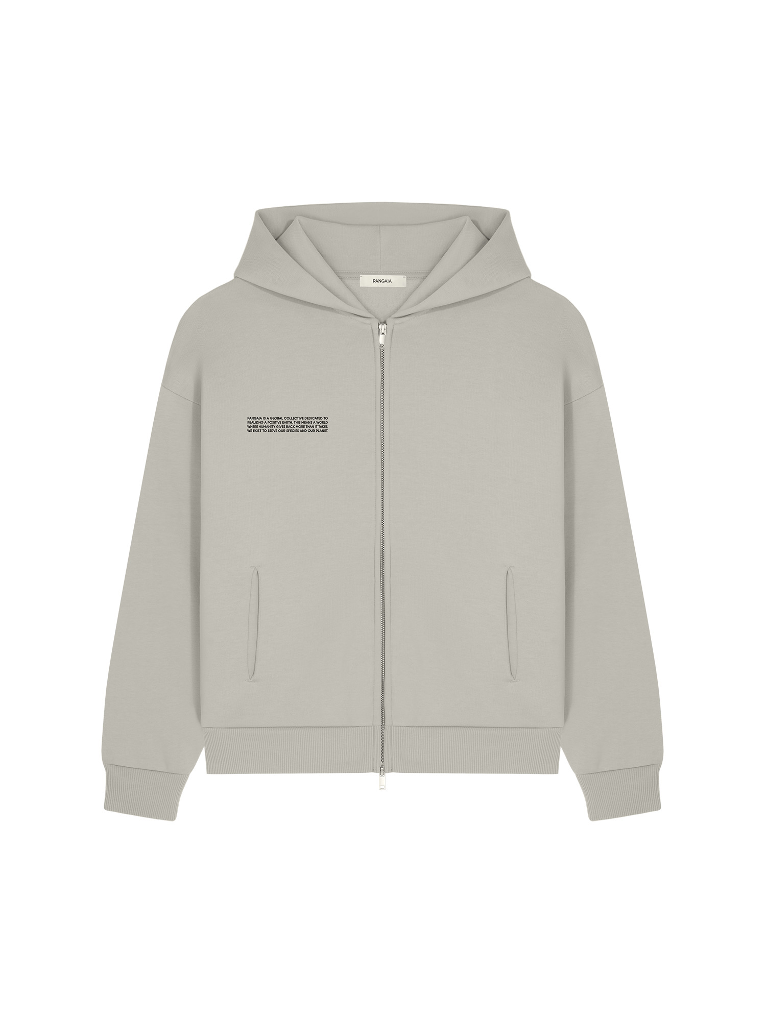 Your new favorite tracksuit. Expertly crafted from 50% organic cotton and 50% recycled cotton, the Two-Way Zip-Through Hoodie in [color to go here] offers a brand-new design, an ultra-soft feel and a structured silhouette that holds its own shape. Designed for everyday ease, the latest addition to the Heavyweight family was treated with PPRMINT™ oil to help keep it fresher for longer.Material: 50% OCS-certified organic cotton50% GRS-certified recycled cotton420 GSM Fit: Relaxed Feel: Ultra-soft Designed for: Everyday ease Details: Hooded, two-way zip, side pockets, text block (on chest), ribbed hem and cuffs Made in: Portugal Size & fit Fit: Oversized Oversized - An exaggerated fit with a boxy shape, think an elevated style that makes a statement. Size down for a more traditional fit, or size up for a bold silhouette. This is a genderless product; we recommend sizing down if you are female. Care & composition - Organic Cotton - Recycled Cotton - PPRMINT™ - 420 GSM - Made in Portugal - Genderless Fit 50% Organic Cotton 50% Recycled Cotton Treated with natural peppermint (PPRMINT™) to keep it fresh longer. Trims and labels All trims, labels and threads are either recycled or responsibly sourced. Packaging Product packaging is part bio-based, acting to preserve both your new garment and environment. Once opened, please discard responsibly in a compost facility to allow full disappearance within 24 weeks. Care - Gentle machine wash with similar colors - Iron on reverse, do not iron on print and trims - Line dry away from direct sunlight - Do not bleach - Do not tumble dry - Do not dry clean