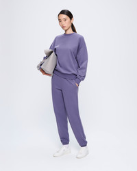 Wear with wonder. Expertly crafted from 100% OCS-certified organic cotton, the 365 Midweight Track Pants in slate blue offer a brand-new, cosmos-inspired color plus a loose and lightweight feel. Designed for year-round wear, the latest addition to the Midweight family was treated with PPRMINT™ oil to help keep it fresher for longer.Material: 100% OCS-certified organic cotton320 GSM Fit: Relaxed Feel: Lightweight and breathableDesigned for: Year-round wear Details: Side pockets, subtle drawstring waist, cuffed ankles, wordmark (on front) Made in: Portugal Size & fit Fit: Oversized Oversized - An exaggerated fit with a boxy shape, think an elevated style that makes a statement. Size down for a more traditional fit, or size up for a bold silhouette. This is a genderless product; we recommend sizing down if you are female. Care & composition - Organic Cotton - PPRMINT™ - 320 GSM - Made in Portugal 100% Organic Cotton Treated with natural peppermint (PPRMINT™) to keep it fresh longer. Trims and labels All trims, labels and threads are either recycled or responsibly sourced. Packaging Product packaging is part bio-based, acting to preserve both your new garment and environment. Once opened, please discard responsibly in a compost facility to allow full disappearance within 24 weeks. Care - Gentle machine wash with similar colors - Line dry away from direct sunlight - Iron on reverse, do not iron on print and trims - Do not bleach - Do not tumble dry