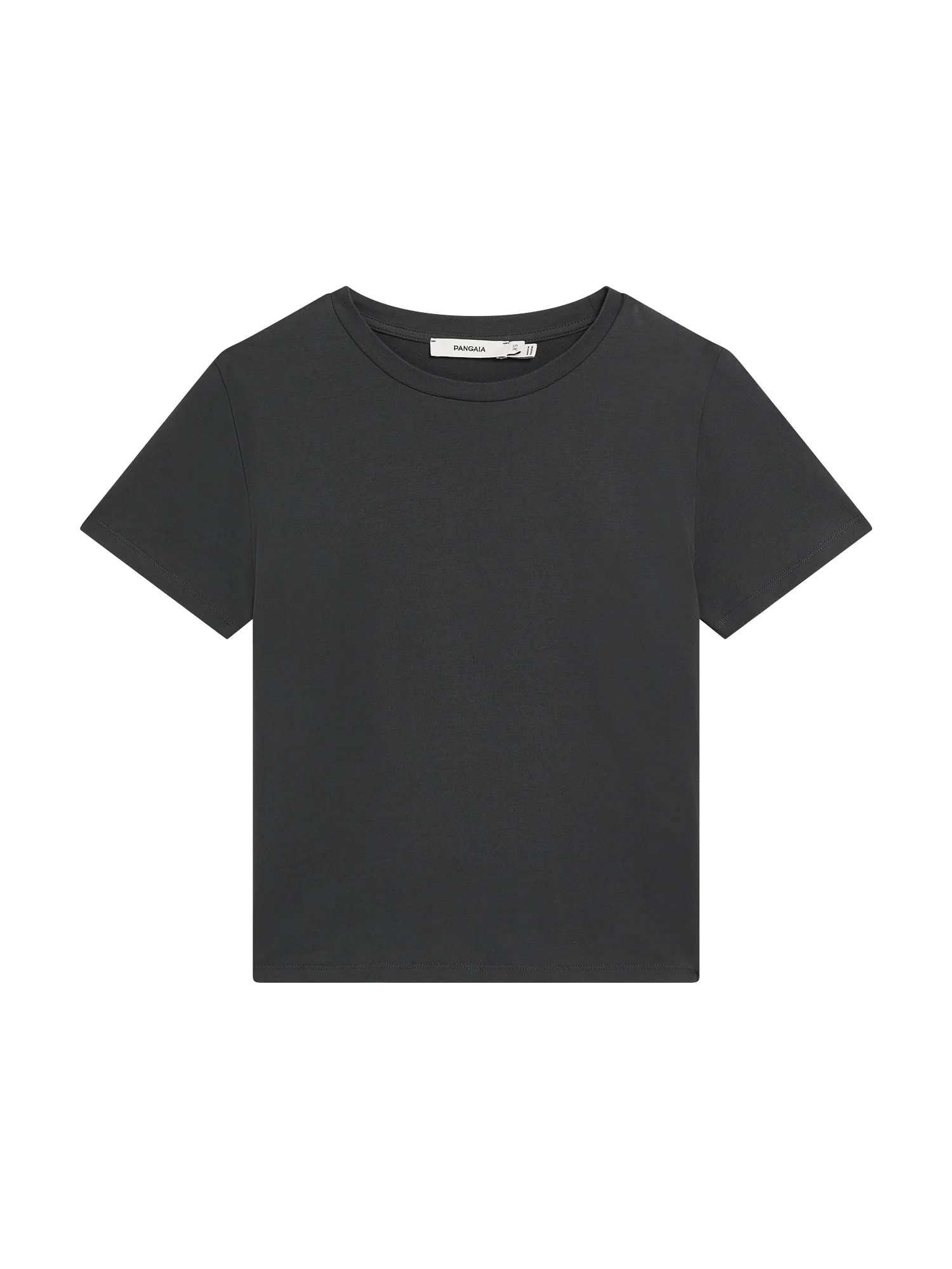 Effortless by nature. Expertly crafted from 94% OCS-certified organic cotton and 6% Elastane ROICA™, the Cotton-Stretch Slim T-Shirt in smoked black offers an ultra-soft feel and an ultra-close fit. Designed for daily rituals, this just-landed athleisure wear staple was treated with PPRMINT™ oil to help keep it fresher for longer. Material: 94% OCS-certified organic cotton06% Elastane ROICA™ 160 GSM Fit: Form-fitting Feel: Ultra-soft Designed for: Everyday ease and lightweight layering Details: Crew neck collar, short sleeves, the PANGAIA wordmark (on back) Made in: Portugal Size & fit Slim Fit - Our slim fit pieces offer a tailored look that's closer to the body but not overly tight. Think of it as the stylish midpoint between form-fitting and regular. If you prefer a more laid-back vibe, consider sizing up. Care & composition - 160 GSM - PPRMINT™ - Made in Portugal - Organic Cotton 94% OCS-certified organic cotton 6% Elastane ROICA™ Trims and labels All trims, labels and threads are either recycled or responsibly sourced. Packaging Product packaging is part bio-based, acting to preserve both your new garment and environment. Once opened, please discard responsibly in a compost facility to allow full disappearance within 24 weeks. Care - Machine Washable - Do not bleach - Do not tumble dry - Line dry away from direct sunlight - Do not dry clean - Medium Iron