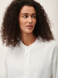 Womens DNA Aloe Linen Mandarin Collar Long Sleeve Shirt - Off-White