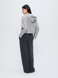 Layers you return to. Expertly crafted from 45% OCS-certified organic cotton, 45% GRS-certified recycled cotton, and 10% Elastane Creora®, the Double Jersey Pleated Trousers in smoked black offer an ultra-soft feel and a straight-leg fit. Designed for daily rituals, this just-landed athleisure wear staple was treated with PPRMINT™ oil to help keep it fresher for longer.Material: 45% OCS-certified organic cotton45% GRS-certified recycled cotton 10% Elastane Creora®340 GSM Fit: A high-waist and straight-leg fit Feel: Ultra-soft Designed for: Everyday ease Details: Front pleating, drawstring waistband, sides pockets and the PANGAIA wordmark (on front) Made in: Portugal Size & fit Relaxed - For a touch of laid-back, opt for our relaxed fit. It's roomier than regular without feeling overly baggy. Stay in your normal size for a comfortable look or size down for a more regular fit. Care & composition - Organic Cotton - Recycled Cotton - 340 GSM - Made in Portugal 45% OCS-certified organic cotton 45% GRS-certified recycled cotton 10% Elastane Creora® Trims and labels All trims, labels and threads are either recycled or responsibly sourced. Packaging Product packaging is part bio-based, acting to preserve both your new garment and environment. Once opened, please discard responsibly in a compost facility to allow full disappearance within 24 weeks. Care - Machine Washable - Do not bleach - Do not tumble dry - Line dry away from direct sunlight - Do not dry clean - Medium Iron