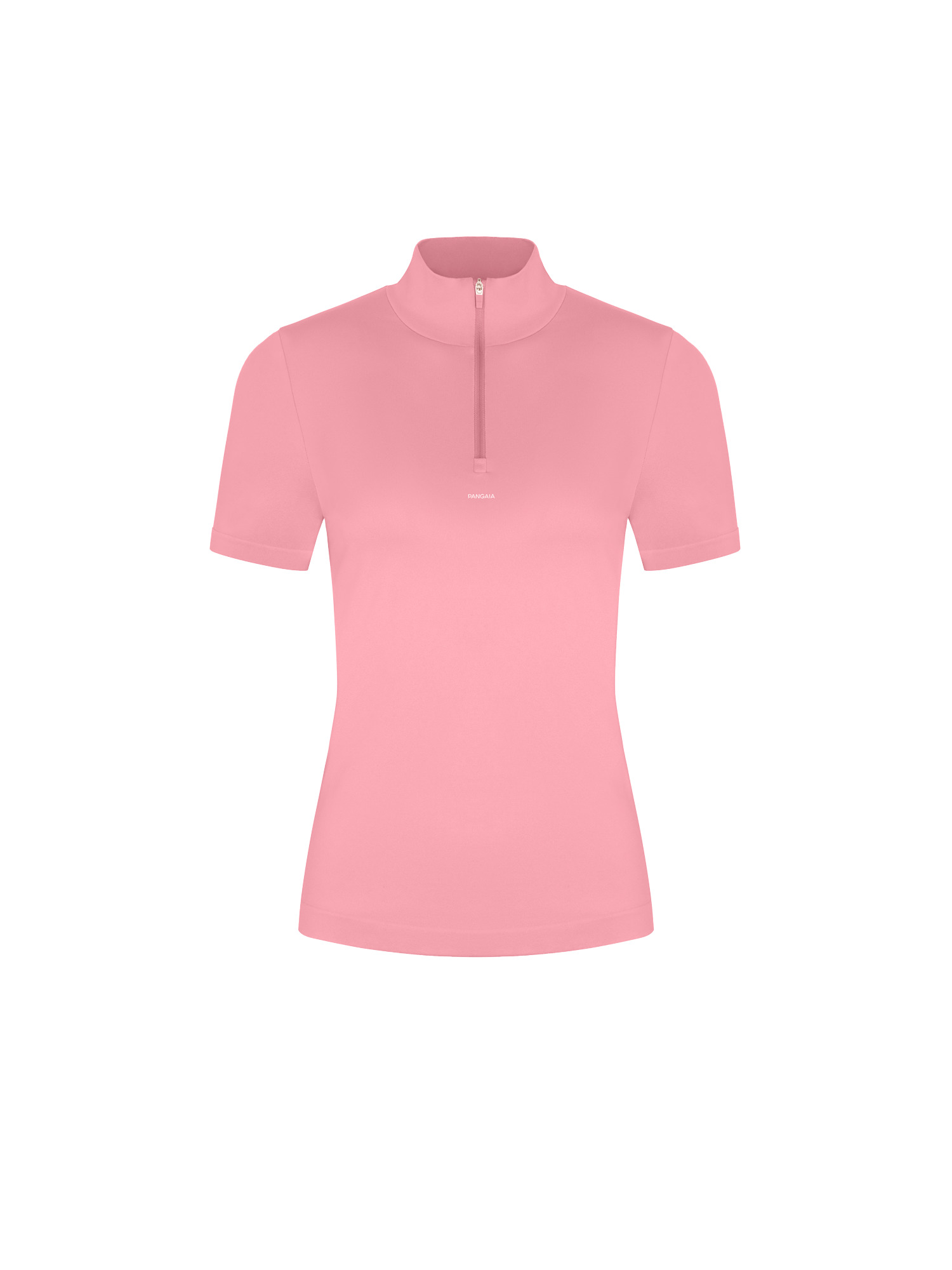 Womens Plant-Stretch Zipped Short Sleeve Top - Dewy Rose