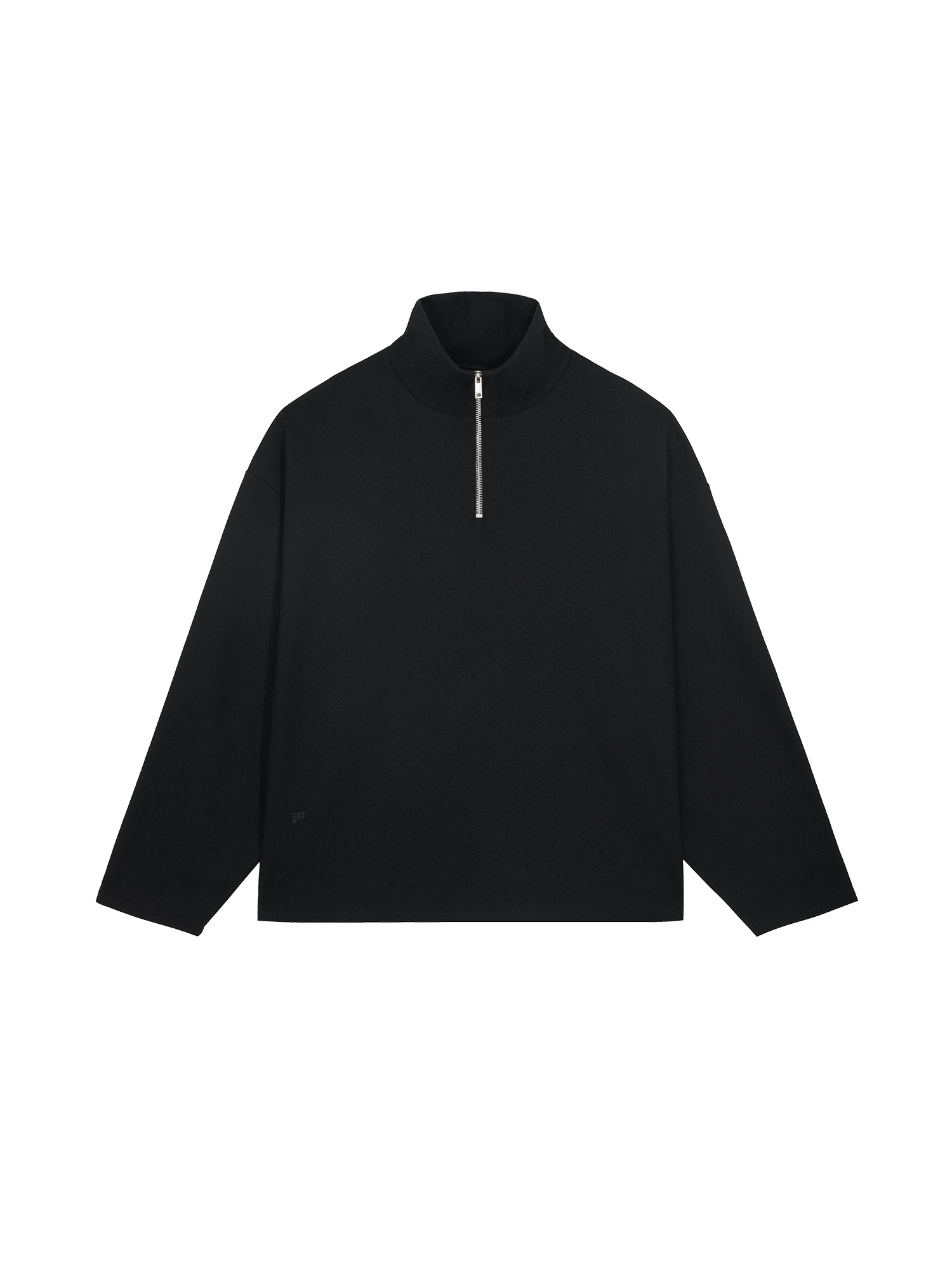 Women's Recycled Wool Jersey Half-Zip Sweater - Black