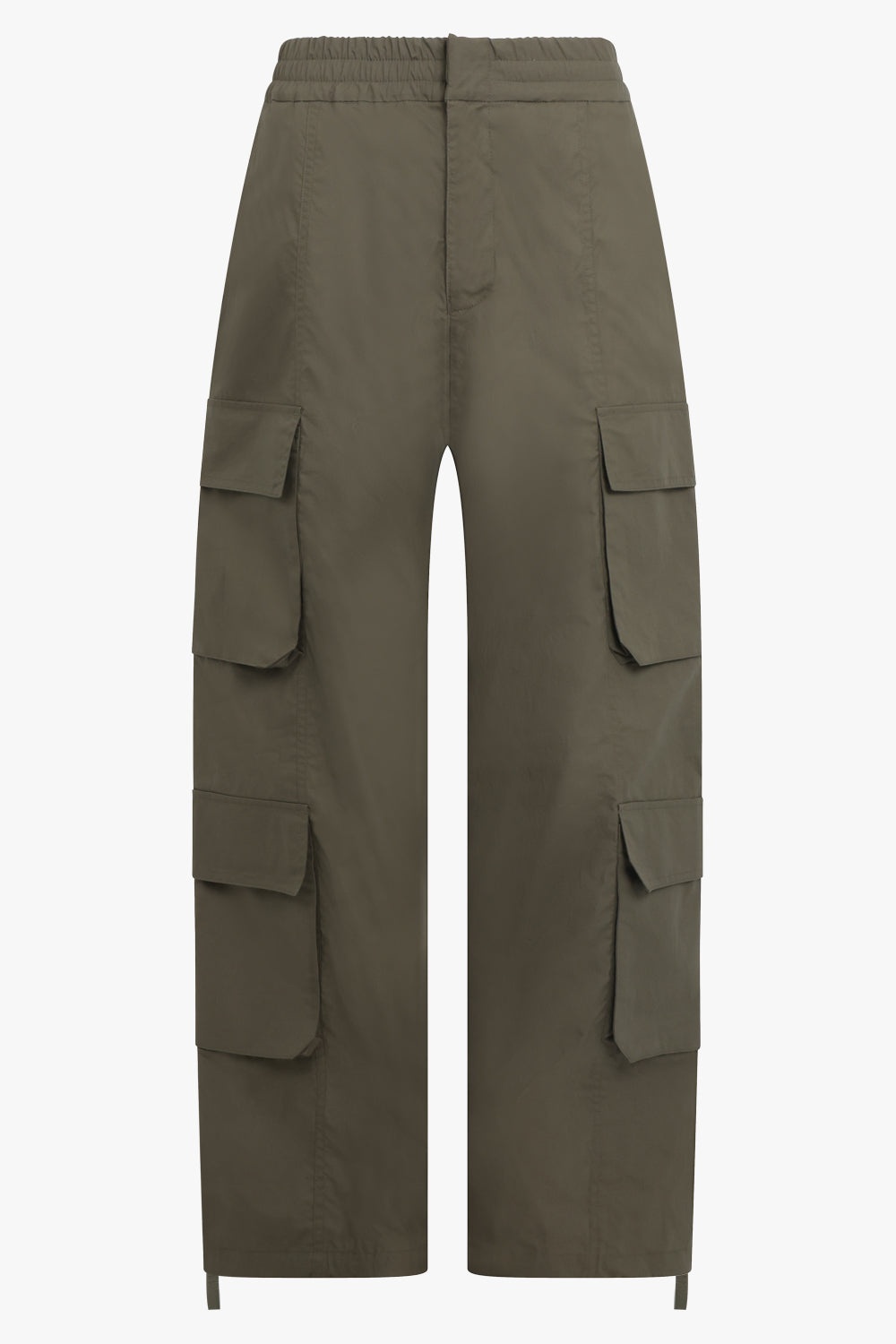Featuring a elasticised waistband and a straight leg cut, these cargo pants offer ultimate comfort. Double pockets on each side and cuffed ankles provide added utility. Fabrication: Cotton 100% Made in South Korea Size and Fit Jay: Model is 191cm/6’02” and is wearing a size M Model Measurements: Bust: 94cm, Waist: 76cm, Hips 89cm Measurements Size S: Waist 74cm, Hips 84cm, Length 106cm Size M: Waist 78cm, Hips 112cm, Length 106cm Size L: Waist 80cm, Hips 114cm, Length 106cm