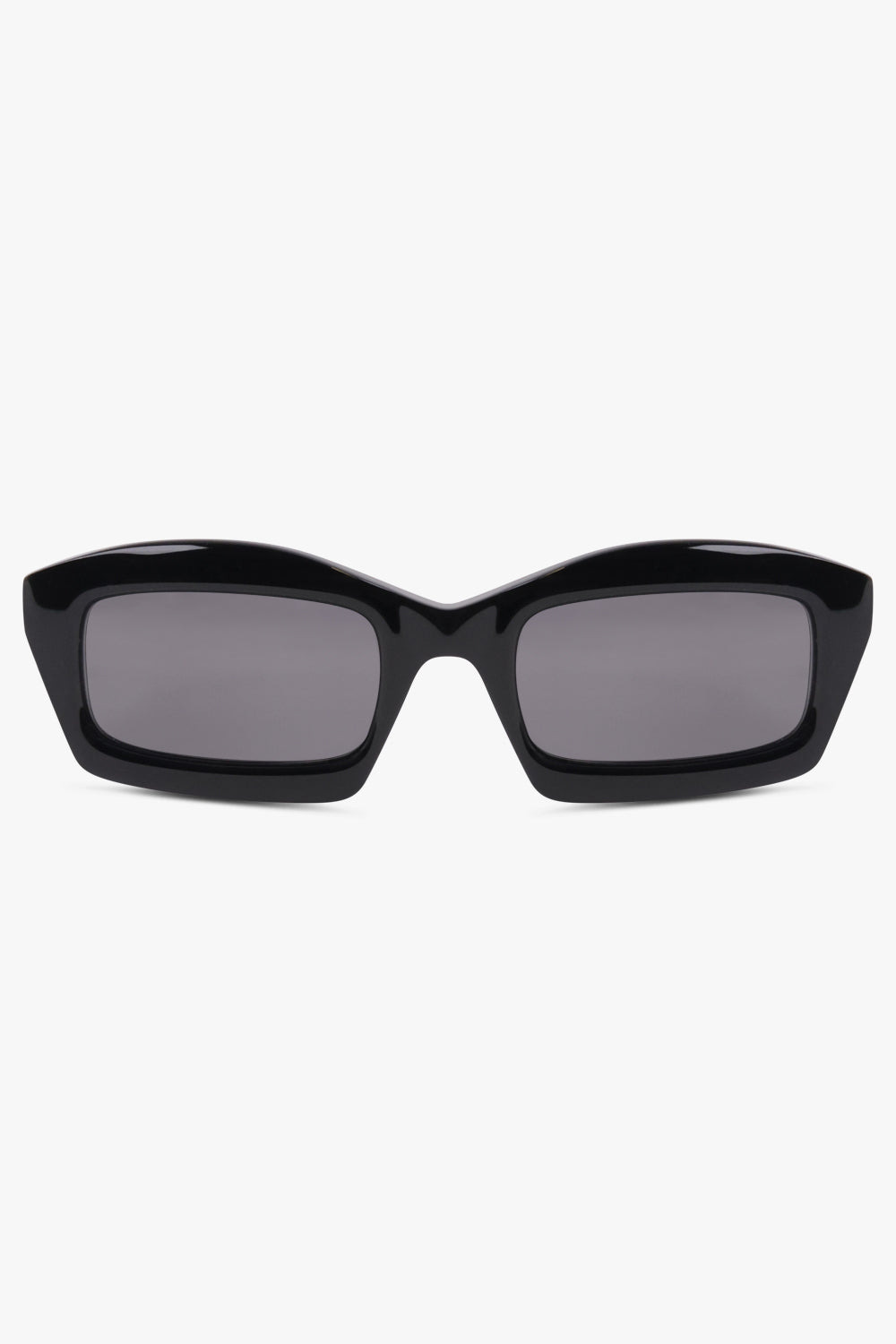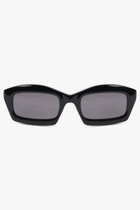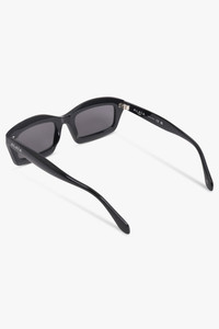 Crafted with bold, angular lines, these thick-frame rectangular sunglasses from Alaia embody modern edge and timeless minimalism. Designed in deep black acetate with matching black lenses, the pair is finished with the Alaia signature engraved on the temples, highlighting the maison’s refined approach to sculptural accessories. - Main material: 100% Acetate - Thick rectangular frame with sharp edges - Gloss black acetate finish - Black tonal lenses - Engraved Alaia signature at temples - 100% UVA/UVB protection Style with other Alaia essentials to complete the look.