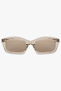 Blending minimalism with sculptural elegance, these Alaia rectangular sunglasses are rendered in transparent taupe acetate with coordinating taupe lenses. The thick frame and sharp edges give a bold silhouette, while the engraved Alaia logo at the temples adds subtle refinement. - Main material: 100% Acetate - Thick angular rectangular frame - Transparent taupe acetate - Tonal taupe lenses - Engraved Alaia branding at temples - 100% UVA/UVB protection Style with other Alaia essentials to complete the look.