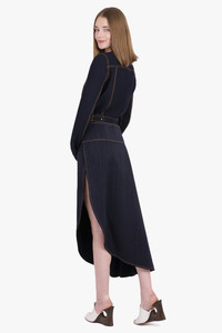 ASYMMETRIC MIDI DENIM FLUID SKIRT | NIGHT BLUE