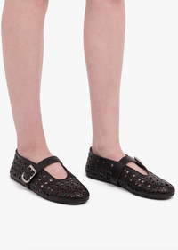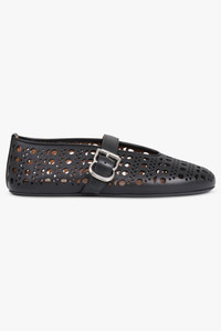 These Alaia ballet flats are inspired by classic Japanese shoes, with a rubber sole and luxurious lambskin leather, intricately cut with the iconic 'Vienna' motif and a buckle-fastening strap. Fabrication: 100% Leather Size and Fit Fits true to size French Sizing