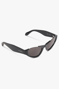 Alaia's Black Cat Eye Sunglasses boast the brand's signature lettering on the temples. These sunglasses are made from recycled materials and feature wide temples adorned with a silver-tone logo. The grey lenses provide 100% UVA/UVB protection. Fabrication 100% Acetate Size and Fit Standard