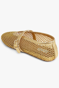 The Alaia Fishnet Ballet Flats are crafted by Italian shoemakers from a fishnet style mesh, encased with a patent leather trim and buckle fastening strap. The style has a rounded toe, inspired by the traditional Japanese shoes, and reimagined into a timeless shoe staple. Fabrication: Main: 90% Polyamide, 10% Calf Leather Sole: 100% Rubbe Size and Fit We recommend sizing down, can run large French Sizing