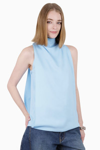Folded Stretch-Cady Sleeveless Top blue