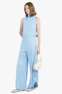 FOLDED HALTERNECK S/LESS TOP | LIGHT BLUE