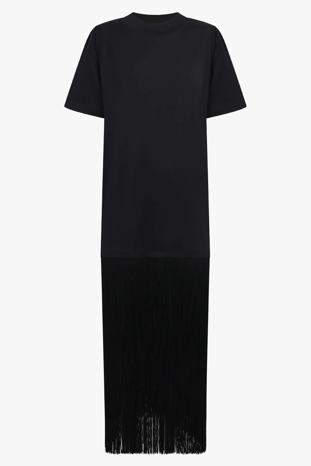 Alaia’s Fringed Cotton T-Shirt in Noir/Black reimagines a casual staple through the house’s sculptural and textural lens. Made in Italy from soft cotton jersey, the design offers a comfortable, lightweight feel while maintaining a clean, structured silhouette. The classic T-shirt shape is elevated through intricate fringe detailing, adding movement and dimension across the surface while preserving a refined, modern aesthetic. A crew neckline and short sleeves keep the silhouette familiar, allowing the textural finish to remain the focal point. Fabrication: 100% Cotton Made in Italy Soft cotton jersey construction Classic crew neckline Short sleeve design Fringe detailing for added texture and movement Lightweight feel for everyday wear Noir/Black colourway A directional take on an everyday essential, designed to bring subtle statement and texture to casual styling.