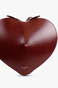 The Alaïa Le Coeur Heart Shape Bag in Garnet Red is crafted from a leather fabrication and features a zip pouch, an adjustable strap and a silver logo detail at the front and an adjustable strap.
