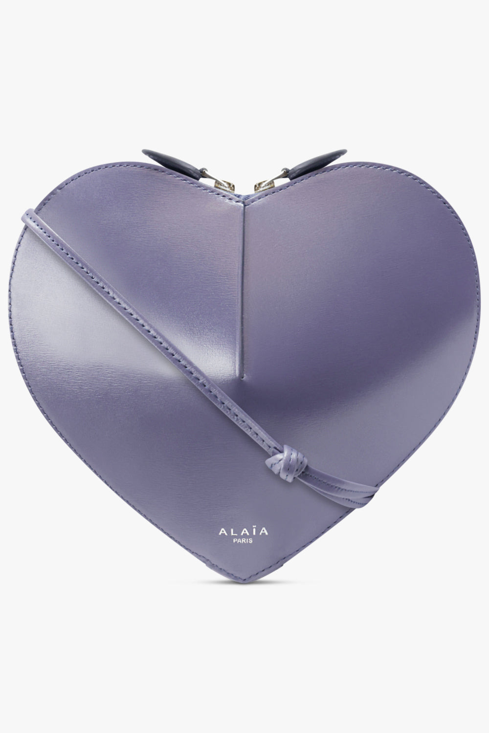 The Alaia Le Coeur Heart Shape Bag in Grey Blue is crafted from a leather fabrication and features a zip pouch, an adjustable strap and a silver logo detail at the front and an adjustable strap. Size and Fit Width: 21cm, Height: 17cm, Depth: 5cm